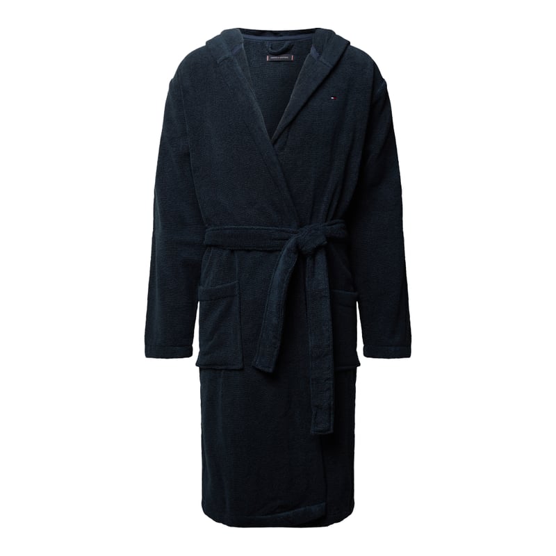 Szlafrok z froty męski Tommy Hilfiger, Czysta bawełna ekologiczna, Luźny fason, Frota, Kaptur, Pasek wiązany w talii, Długość tyłu w rozmiarze M: 113 cm, Długość rękawa w rozmiarze M: 65 cm