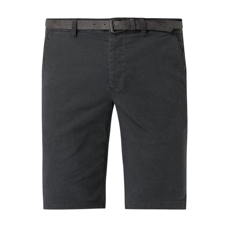 Szorty chinosy męskie REVIEW, Mieszanka bawełny i elastanu , Prosty krój , Drobny wzór, Listwa guzikowa , Wpuszczane kieszenie w stylu francuskim , Metalowe logo , Kieszenie tylne z wypustką , Pasek ze sprzączką, Szerokość w pasie w rozmiarze M: 88 cm