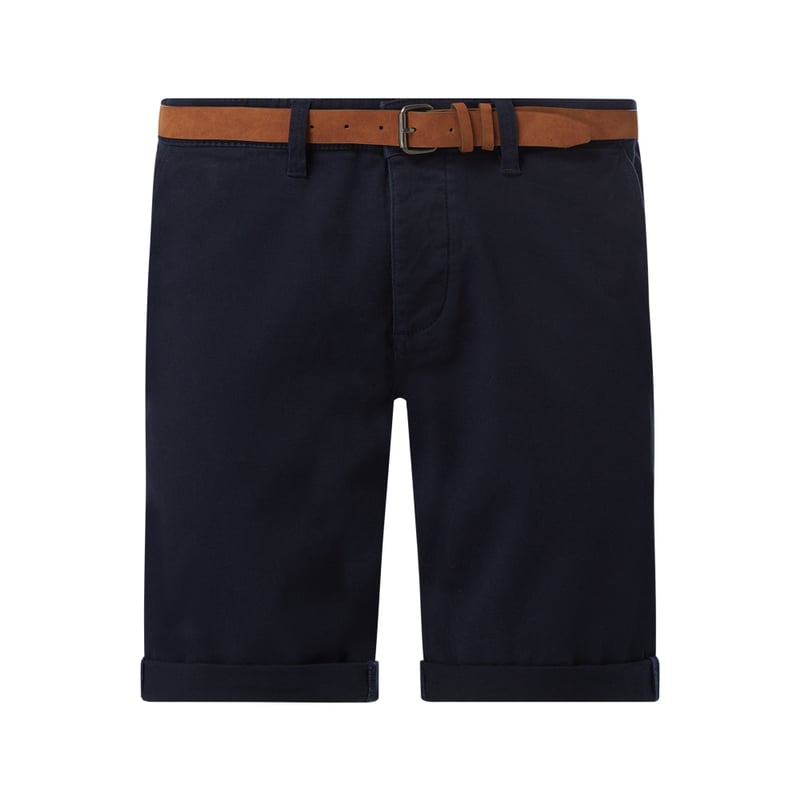 Szorty chinosy męskie REVIEW, Mieszanka bawełny i elastanu , Wąska nogawka , Zapięcie na guzik i zamek błyskawiczny , Pasek ze sprzączką, Wpuszczane kieszenie w stylu francuskim , Kieszenie tylne z wypustką, Szerokość w pasie w rozmiarze M: 82 cm
