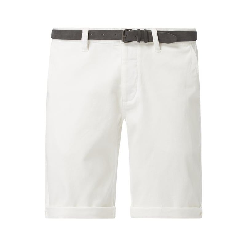 Szorty chinosy męskie REVIEW, Mieszanka bawełny i elastanu , Wąska nogawka , Zapięcie na guzik i zamek błyskawiczny , Pasek ze sprzączką, Wpuszczane kieszenie w stylu francuskim , Kieszenie tylne z wypustką, Szerokość w pasie w rozmiarze M: 82 cm
