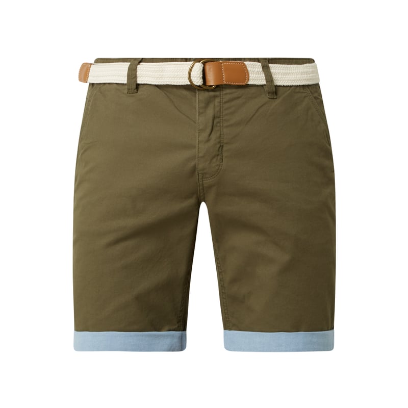 Szorty chinosy męskie REVIEW , Mieszanka bawełny i elastanu, Wąska nogawka, Zapięcie na guzik i zamek błyskawiczny, Pasek , Wpuszczane kieszenie w stylu francuskim , Tylne kieszenie z wypustką zapinane na guzik