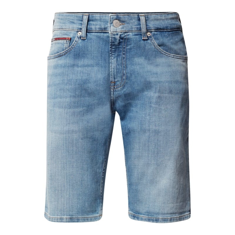 Szorty jeansowe męskie Tommy Jeans, Mieszanka bawełny z dodatkiem streczu, Krój slim fit, 5 kieszeni, Zapięcie na guzik i zamek błyskawiczny, Naszywka z logo, Ozdobne szwy na tylnych kieszeniach, Subtelne, wyhaftowane logo, Szerokość w pasie w rozmiarze 32: 43 cm, Długość wewnętrzna nogawki w rozmiarze 32: 28 cm