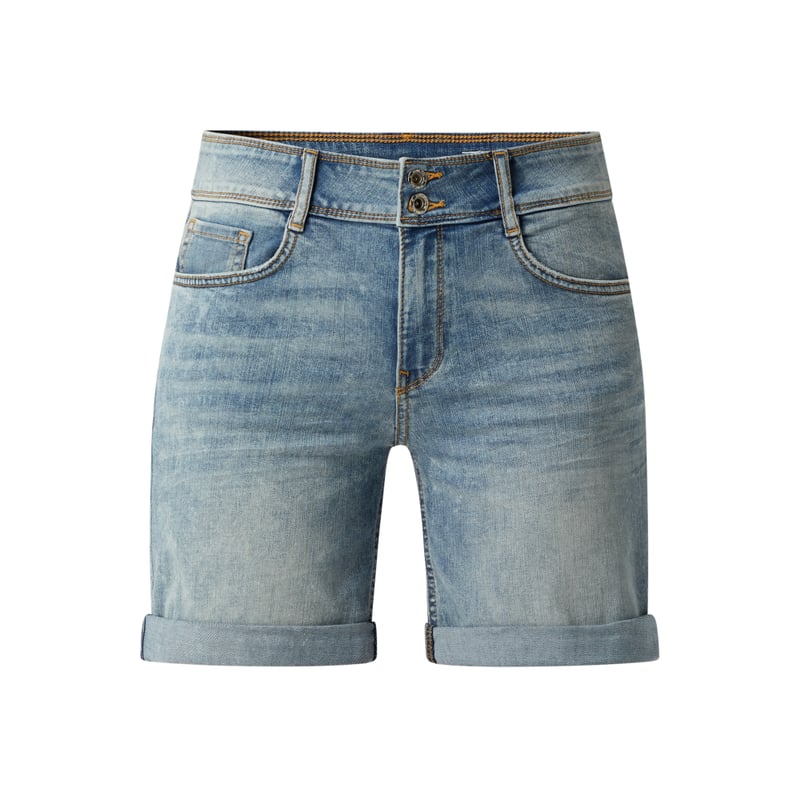 Szorty jeansowe damskie TOM TAILOR, Mieszanka bawełny z dodatkiem wiskozy i streczu, Krój slim fit , Zapięcie na guzik i zamek błyskawiczny , 5 kieszeni, Szerokość w pasie w rozmiarze 28: 76 cm