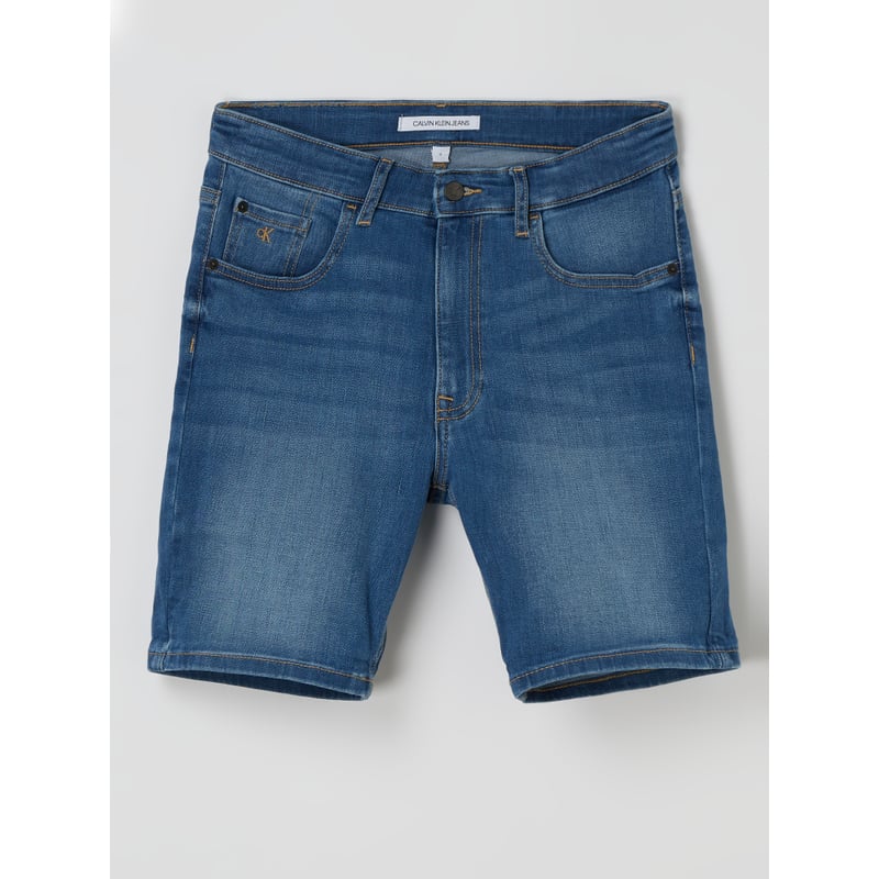 Szorty jeansowe młodzieżowe Calvin Klein Jeans, Mieszanka bawełny i elastanu , Prosta nogawka , Zapięcie na guzik i zamek błyskawiczny , Regulowana szerokość w pasie , 5 kieszeni , Naszywka z logo , Szerokość w pasie w rozmiarze 152: 70 cm