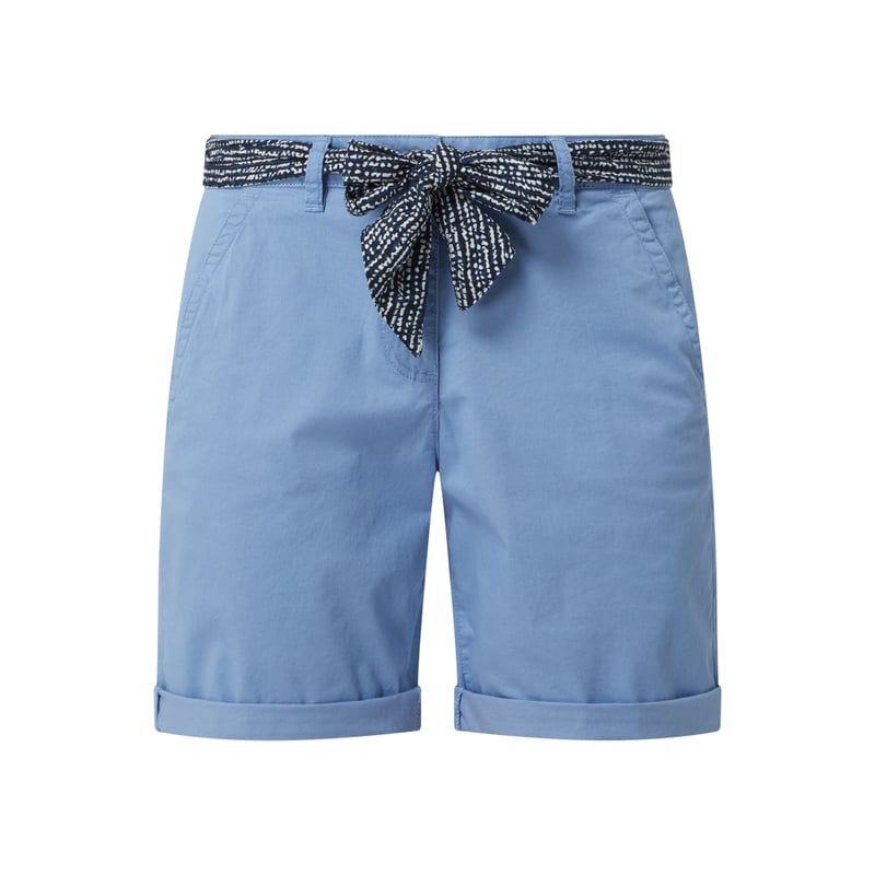 Szorty damskie TOM TAILOR, Mieszanka bawełny i elastanu , Wąska nogawka, Zapięcie na guzik i zamek błyskawiczny , Wiązany pasek, Wpuszczane kieszenie w stylu francuskim, Ozdobne wypustki z tyłu, Szerokość w pasie w rozmiarze 36: 82 cm