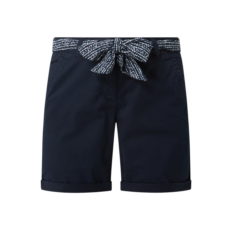 Szorty damskie TOM TAILOR, Mieszanka bawełny i elastanu , Wąska nogawka, Zapięcie na guzik i zamek błyskawiczny , Wiązany pasek, Wpuszczane kieszenie w stylu francuskim, Ozdobne wypustki z tyłu, Szerokość w pasie w rozmiarze 36: 82 cm