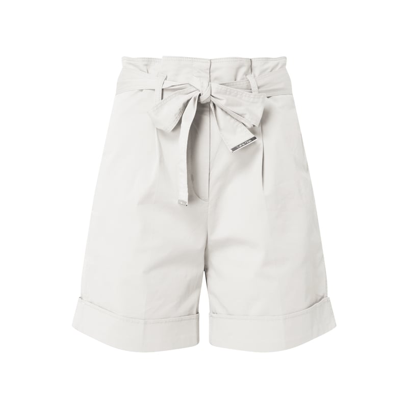 Szorty damskie Calvin Klein , Mieszanka bawełny i elastanu , Spodnie z krótkimi nogawkami, Zapięcie na 2 haftki i zamek błyskawiczny, Wiązany pasek , Zakładki w pasie, Wpuszczane kieszenie, Ozdobne wypustki z tyłu, Przeszyty brzeg nogawki, Szerokość w pasie w rozmiarze 36: 78 cm