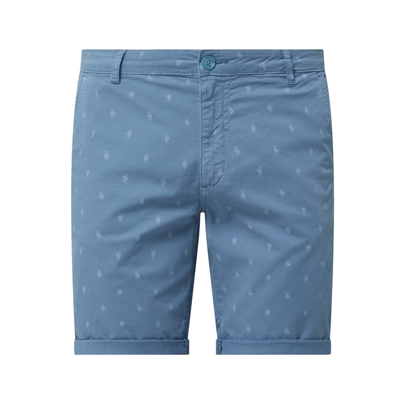 Szorty męskie MONTEGO, Mieszanka bawełny i elastanu, Prosty krój, Wzór na całej powierzchni, Zapięcie na guzik i zamek błyskawiczny, Boczne wpuszczane kieszenie, Lamowane kieszenie tylne, Szerokość w pasie w rozmiarze M: 86 cm