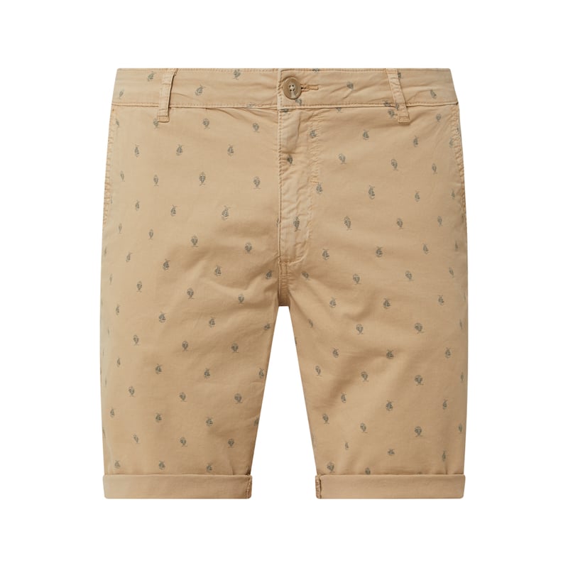 Szorty męskie MONTEGO, Mieszanka bawełny i elastanu, Prosty krój, Wzór na całej powierzchni, Zapięcie na guzik i zamek błyskawiczny, Boczne wpuszczane kieszenie, Lamowane kieszenie tylne, Szerokość w pasie w rozmiarze M: 86 cm