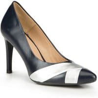 Szpilki damskie z BrazyliiButy damskie na szpilce z ostro zakończonym noskiem, na którym zostały umieszone dwa skrzyżowane pasy w jasnych odcieniach. Model dostępny jest w dwóch wariantach kolorystycznych: czarno-kremowym oraz granatowo-srebrnym.Nasza rada: idealne buty dla amatorek szykownych dodatków. wykonane w technologii "hand made" z najlepszych skór; podeszwa wykonana w całości z materiału syntetycznego; przybliżona wysokość obcasa: 9,5 cm; kraj pochodzenia butów: Brazylia. skóra naturalna skóra naturalna materiał syntetyczny