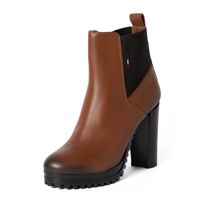 Sztyblety damskie Tommy Jeans, Skóra z drobnym fakturowaniem, Obcas słupek, Elastyczna wstawka, Fakturowana podeszwa, Wysokość obcasa w rozmiarze 40: 11 cm, Wysokość cholewki w rozmiarze 40: 12 cm, Szerokość cholewki w rozmiarze 40: 6 cm
