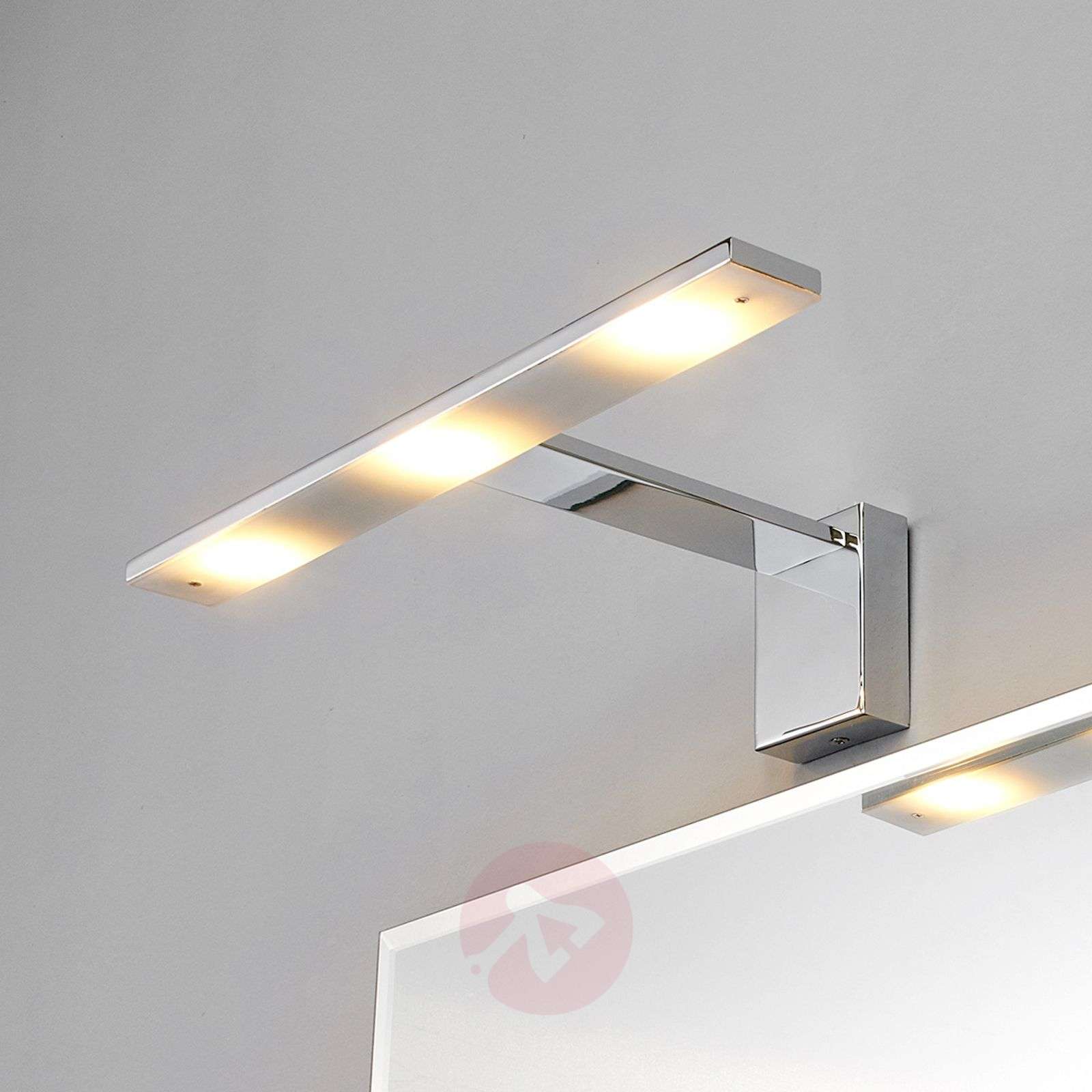 Oświetlenie lustra LORIK z błyszczącego chromu z płaską głowicą Oświetlenie lustra LORIK charakteryzuje piękny, nowoczesny design a także wysoka energooszczędność. Dzięki 3 diodom LED o mocy zaledwie 3 W każda wytwarza silny strumień światła. Chromowana powierzchnia nadaje jej ponadczasowy a zarazem elegancki wygląd. Trzy zintegrowane diody LED są przykryte dyfuzorami z satynowego akrylu, dzięki czemu przenikające przez nie światło zostaje bardzo równomiernie rozproszone. Klasa efektywności energetycznej: A+
