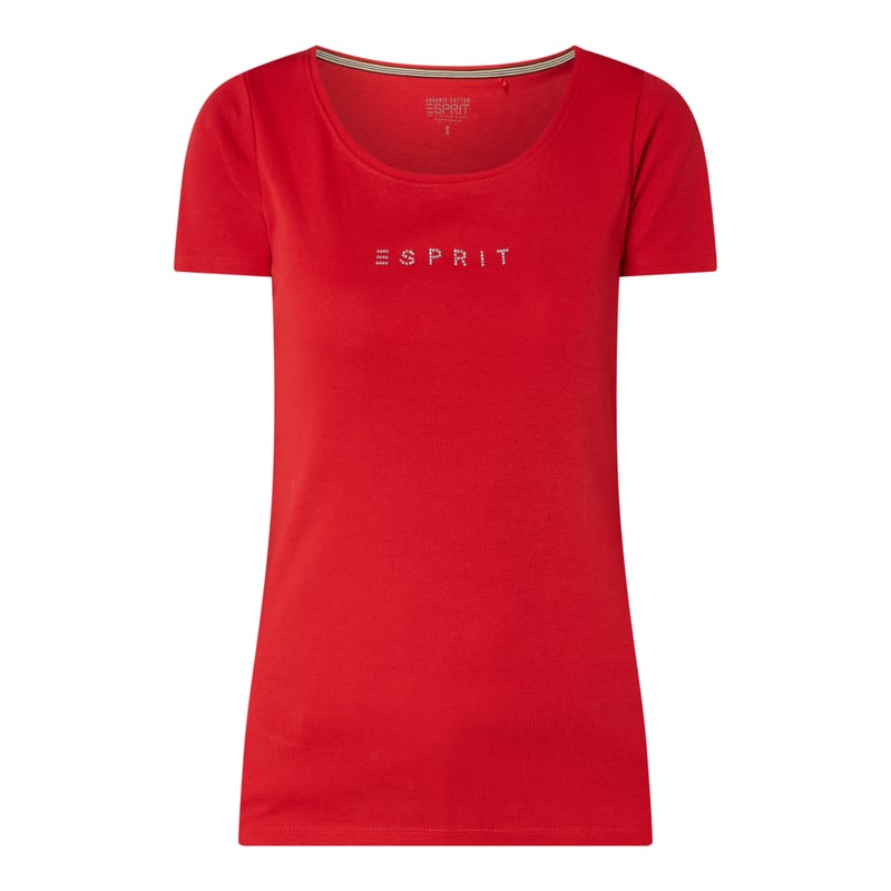 T-shirt damski Esprit, Czysta bawełna (bio), Wąski krój , Okrągły dekolt , Aplikacja z logo z kamieni ozdobnych, Długość tyłu w rozmiarze S: 62 cm