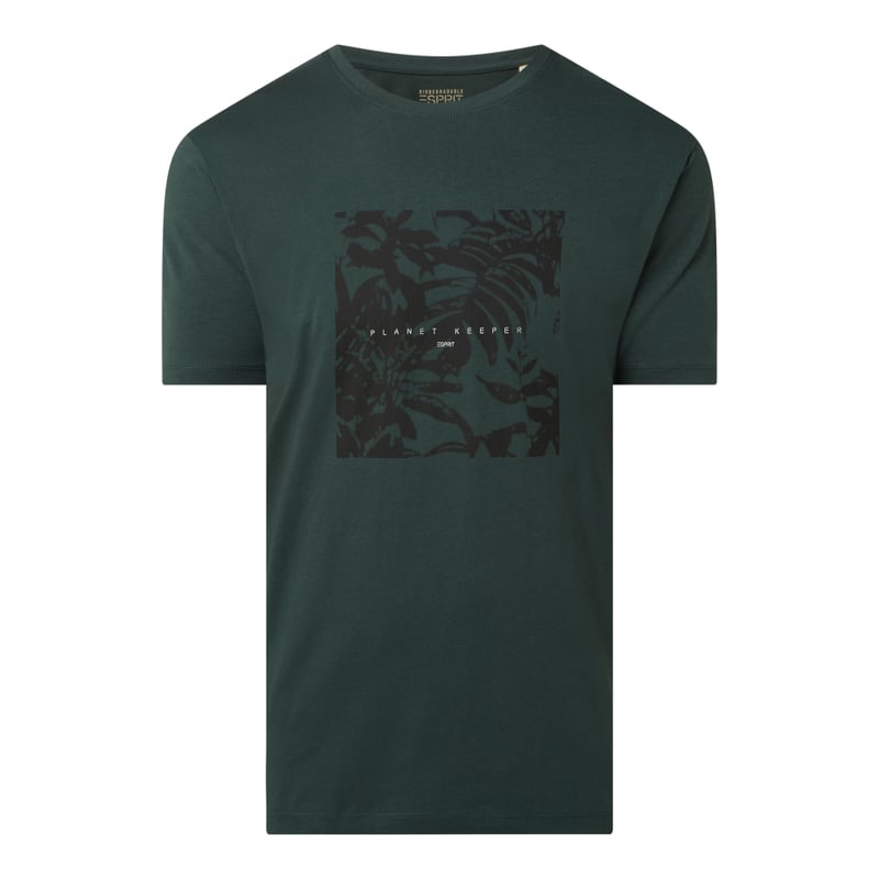 T-shirt męski Esprit, Czysta bawełna ekologiczna , Krój regular fit , Okrągły dekolt , Nadruk z logo , Długość tyłu w rozmiarze M: 69 cm