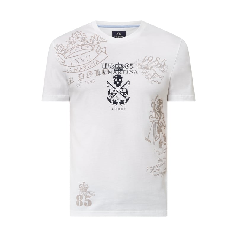 T-shirt męski La Martina, Czysta bawełna, Krój regular fit, Okrągły dekolt, Logo, Długość tyłu w rozmiarze M: 67 cm