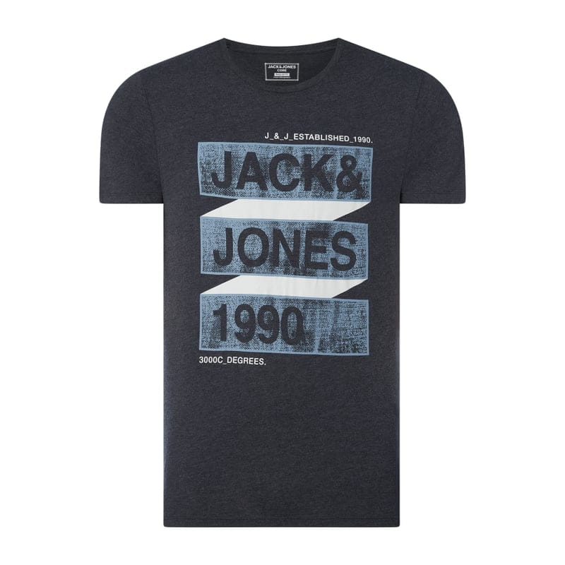 T-shirt męski JACK & JONES, Czysta bawełna , Krój regular fit , Okrągły dekolt , Nadrukowany napis , Długość tyłu w rozmiarze M: 72 cm