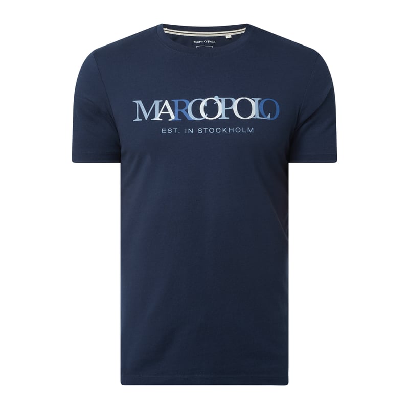 T-shirt męski MARC O’POLO, Czysta bawełna ekologiczna , Krój shaped fit , Okrągły dekolt , Nadruk z logo , Długość tyłu w rozmiarze M: 68 cm