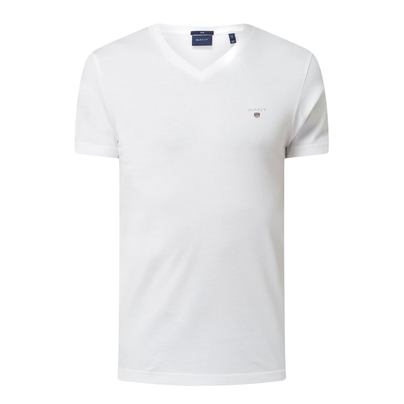 T-shirt męski GANT , Czysta bawełna , Krój slim fit, Dekolt w serek , Wyhaftowane logo , Długość tyłu w rozmiarze M: 68 cm