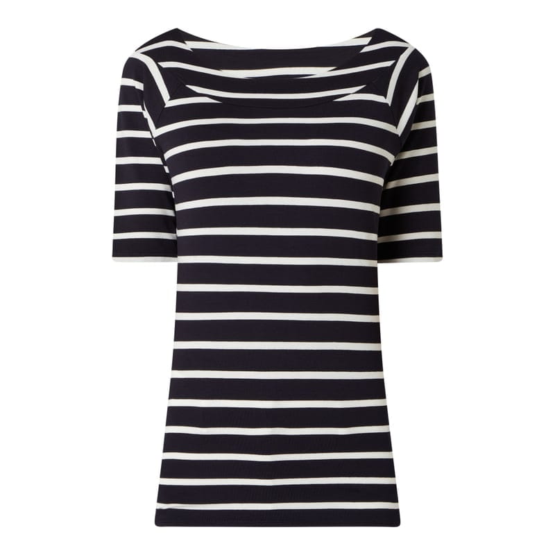 T-shirt damski MORE & MORE, Mieszanka wiskozy i elastanu, Taliowany krój, Wzór w paski, Okrągły dekolt, Długość tyłu w rozmiarze 36: 51 cm
