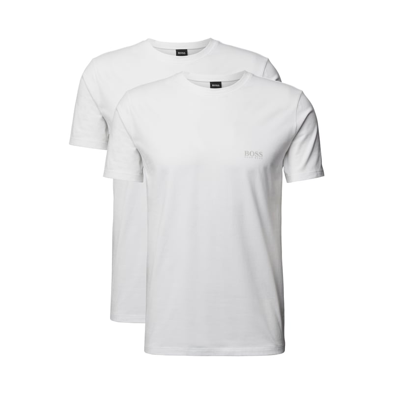 T-shirt męski BOSS, Mieszanka bawełny i elastanu, Krój regular fit, Okrągły dekolt, Subtelny nadruk z logo, Zestaw 2 szt.