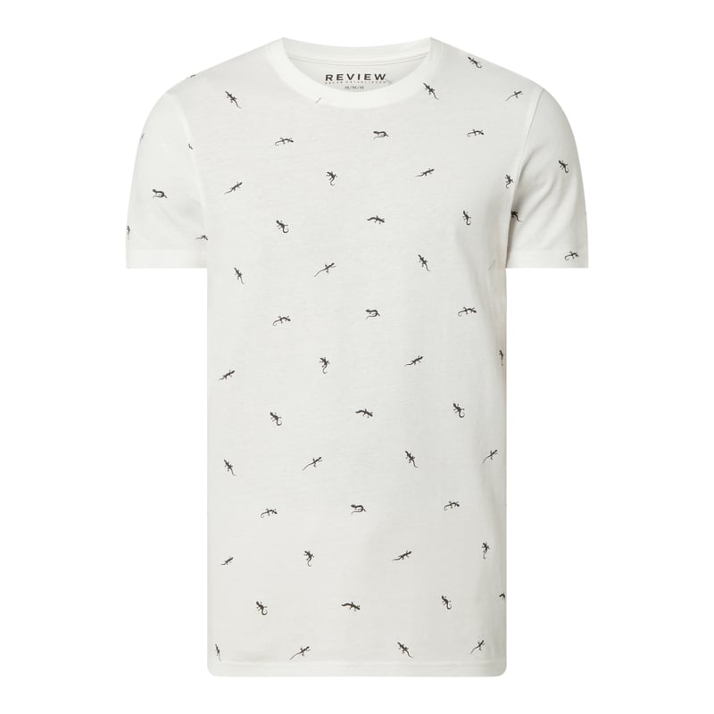 T-shirt męski REVIEW, Czysta bawełna , Prosty krój , Wzór na całej powierzchni , Okrągły dekolt , Długość tyłu w rozmiarze M: 67 cm