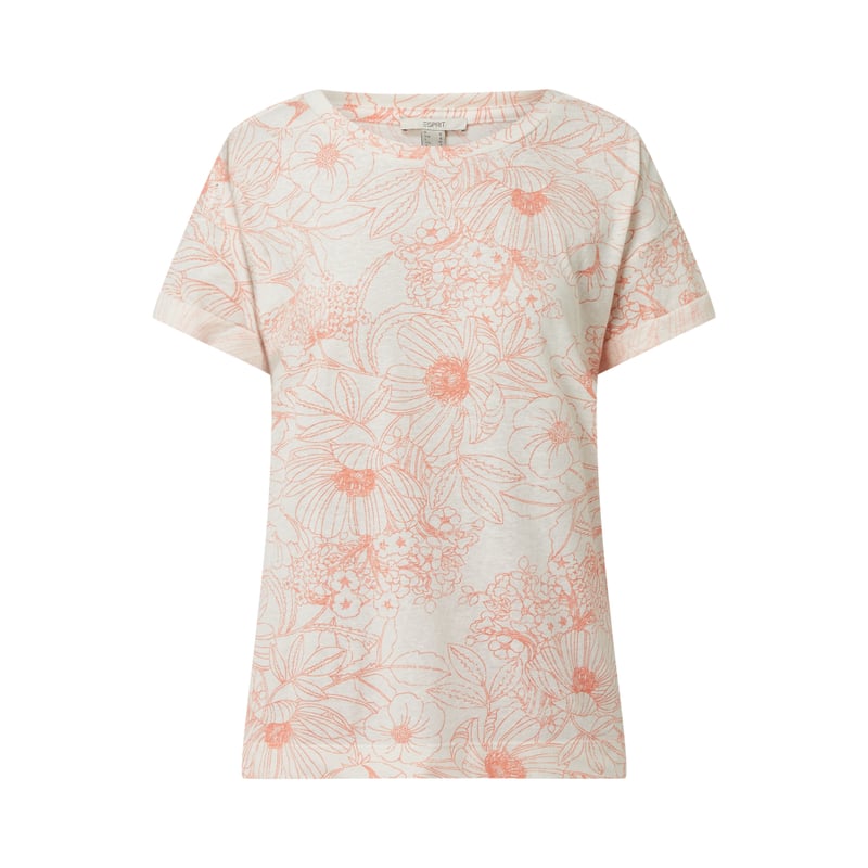 T-shirt damski Esprit, Poliester z recyklingu, bawełna ekologiczna i wiskoza , Prosty krój , Wzór na całej powierzchni , Okrągły dekolt , Obniżone ramiona, Rękawy z przeszytą zakładką, Długość tyłu w rozmiarze S: 59 cm