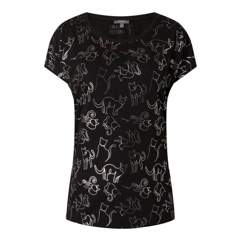 T-shirt damski MONTEGO, Mieszanka materiałów z dodatkiem wiskozy , Prosty krój , Wzór na całej powierzchni z przodu , Okrągły dekolt, Ukośnie skrojone rękawy , Długość tyłu w rozmiarze S: 58 cm