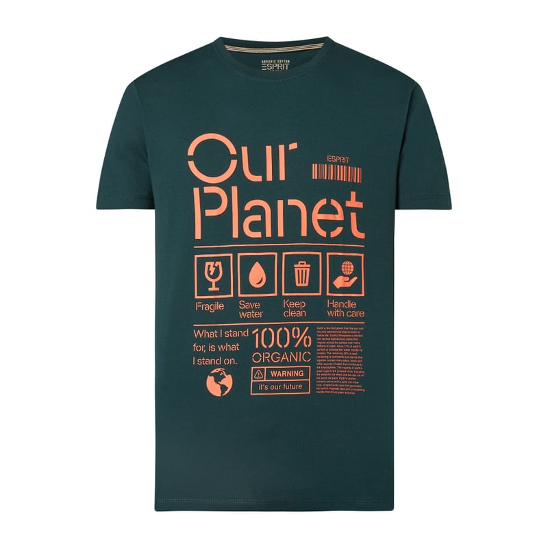 T-shirt męski Esprit, Czysta bawełna ekologiczna , Prosty krój , Okrągły dekolt , Nadrukowany napis z logo, Wszywka z logo , Długość tyłu w rozmiarze M: 69,5 cm