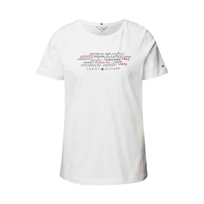 T-shirt damski Tommy Hilfiger, Czysta bawełna ekologiczna, Luźny krój, Okrągły dekolt, Nadruk z logo, Długość tyłu w rozmiarze S: 60 cm