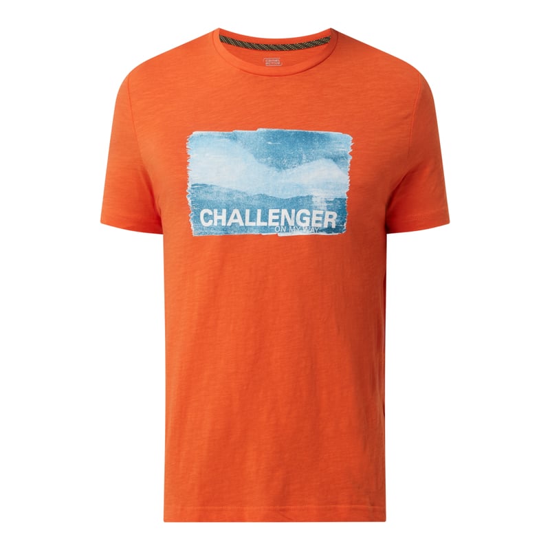 T-shirt męski camel active, Czysta bawełna ekologiczna , Prosty krój , Dżersej slub , Okrągły dekolt , Nadruk , Długość tyłu w rozmiarze M: 72 cm