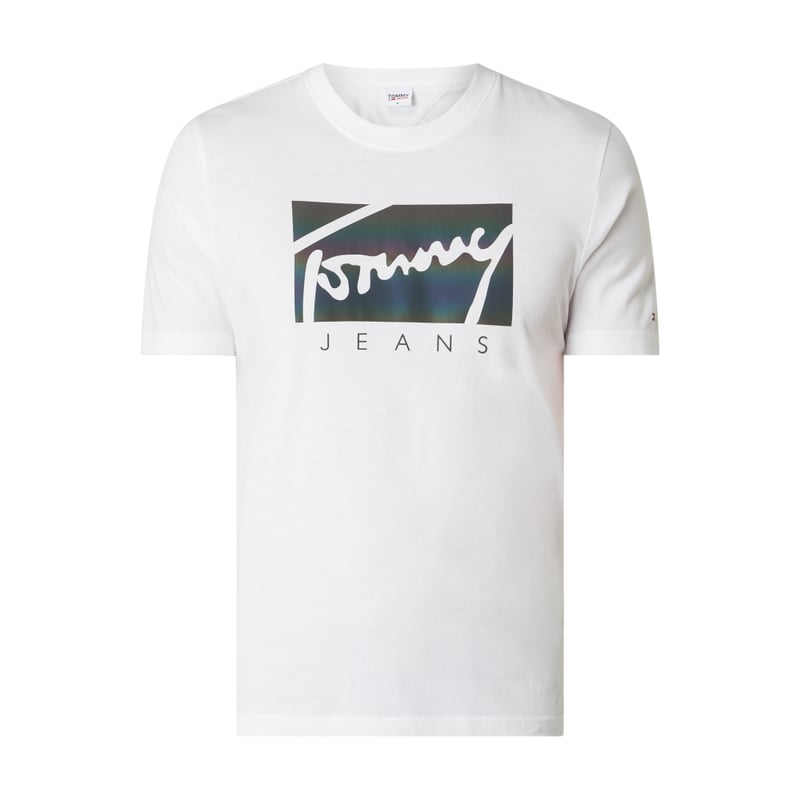 T-shirt męski Tommy Jeans, Czysta bawełna ekologiczna , Prosty krój , Okrągły dekolt , Mieniący się nadruk z logo , Wyhaftowane logo na rękawie , Długość tyłu w rozmiarze M: 71 cm