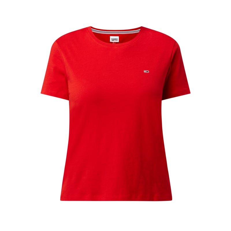 T-shirt damski Tommy Jeans , Czysta bawełna ekologiczna, Taliowany krój, Okrągły dekolt, Logo, Długość tyłu w rozmiarze M: 52 cm