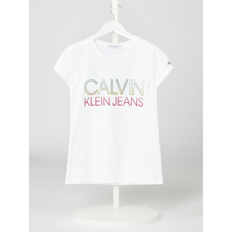 T-shirt młodzieżowy Calvin Klein Jeans, Czysta bawełna ekologiczna, Wąski krój, Okrągły dekolt, Logo, Długość tyłu w rozmiarze 152: 52 cm