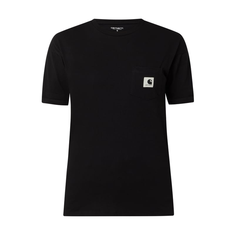T-shirt damski Carhartt Work In Progress , Czysta bawełna ekologiczna , Luźny krój, Okrągły dekolt , Obniżone ramiona , Krótkie rękawy , Kieszeń na piersi z naszywką z logo, Długość tyłu w rozmiarze S: 62 cm
