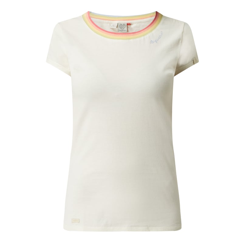 T-shirt damski Ragwear, Czysta bawełna, Prosty krój, Okrągły dekolt w kontrastowym kolorze, Logo, Długość tyłu w rozmiarze S: 61 cm