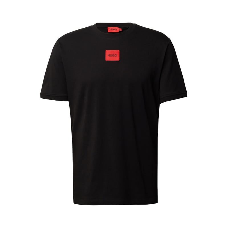T-shirt męski HUGO, Czysta bawełna, Prosty krój, Okrągły dekolt, Naszywka z logo, Prążkowane zakończenia rękawów, Długość tyłu w rozmiarze M: 69 cm