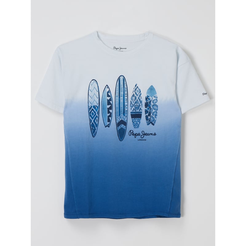 T-shirt młodzieżowy Pepe Jeans, Czysta bawełna, Prosty krój, Okrągły dekolt, Cieniowanie , Nadruk z logo, Długość tyłu w rozmiarze 152: 57 cm