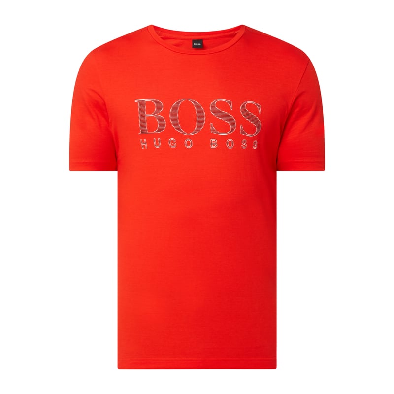T-shirt męski BOSS, Czysta bawełna, Prosty krój, Model 'Tee 5', Okrągły dekolt, Nadruk z logo, Długość tyłu w rozmiarze M: 68 cm