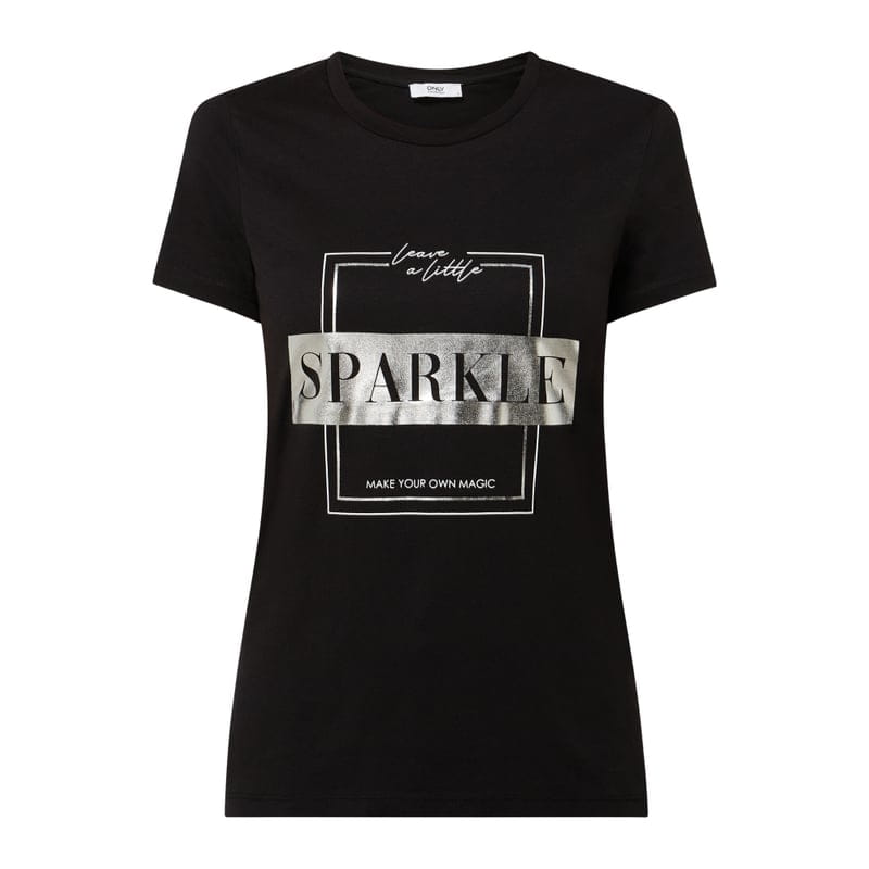 T-shirt damski ONLY , Czysta bawełna , Taliowany krój, Okrągły dekolt, Nadrukowany napis , Długość tyłu w rozmiarze S: 60 cm