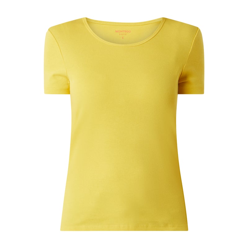T-shirt damski MONTEGO , Czysta bawełna , Taliowany krój, Okrągły dekolt , Długość tyłu w rozmiarze S: 61 cm