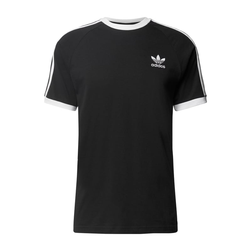 T-shirt męski adidas Originals, Czysta bawełna, Krój regular fit, Paski w kontrastowym kolorze, Wyhaftowane logo, Okrągły dekolt z prążkowanego ściągacza, Długość tyłu w rozmiarze M: 70 cm