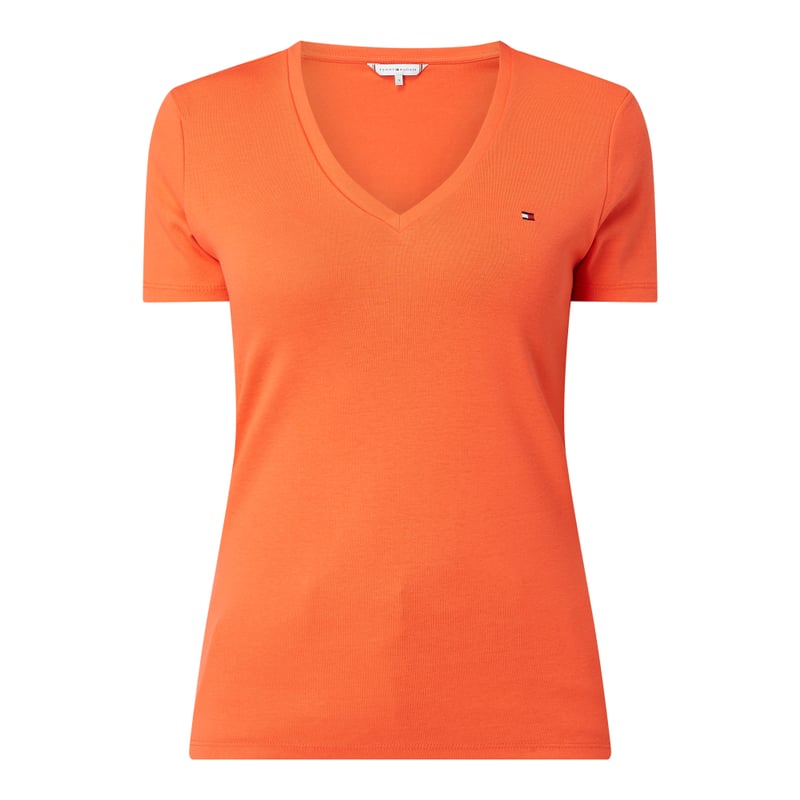T-shirt damski Tommy Hilfiger, Czysta bawełna , Wąski krój , Dekolt w serek , Wyhaftowane logo , Długość tyłu w rozmiarze S: 62 cm