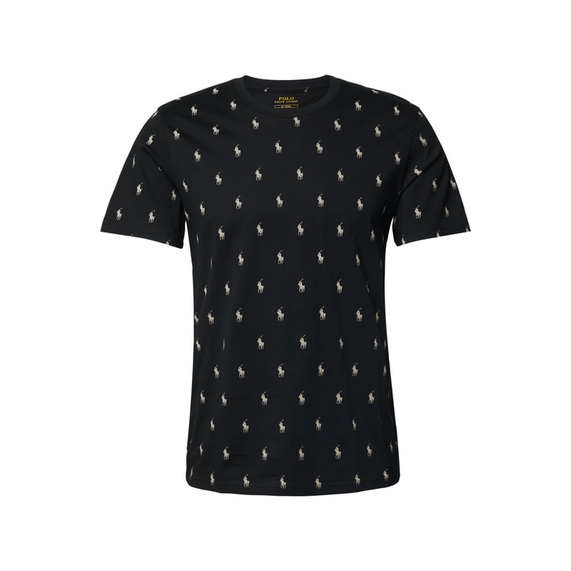 T-shirt męski Polo Ralph Lauren, Czysta bawełna, Prosty krój, Okrągły dekolt z prążkowanego ściągacza, Logo na całej powierzchni, Długość tyłu w rozmiarze M: 69 cm