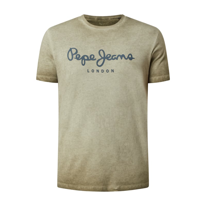 T-shirt męski Pepe Jeans, Czysta bawełna, Prosty krój, Efekt sprania, Okrągły dekolt, Logo, Długość tyłu w rozmiarze M: 74 cm