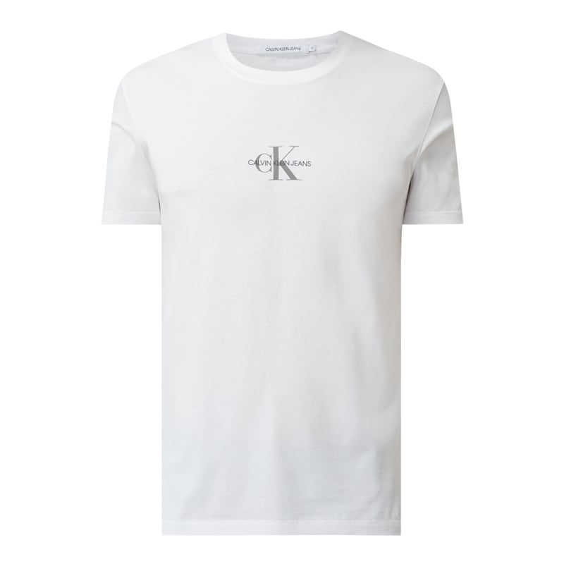 T-shirt męski Calvin Klein Jeans, Czysta bawełna, Prosty krój, Okrągły dekolt, Nadruk z logo, Długość tyłu w rozmiarze M: 70 cm