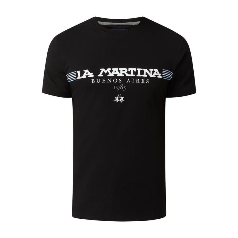 T-shirt męski La Martina, Czysta bawełna , Prosty krój, Okrągły dekolt, Logo, Długość tyłu w rozmiarze M: 72 cm