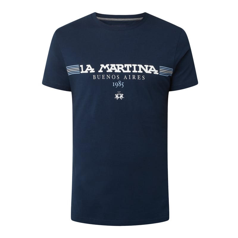 T-shirt męski La Martina, Czysta bawełna , Prosty krój, Okrągły dekolt, Logo, Długość tyłu w rozmiarze M: 72 cm