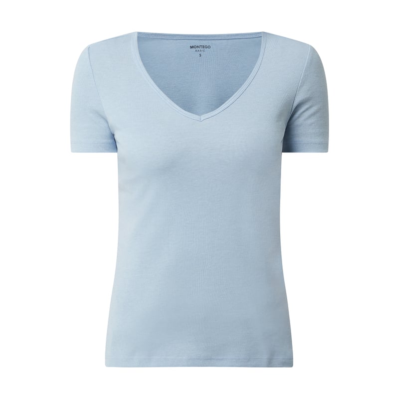 T-shirt damski MONTEGO, Mieszanka materiałów z dodatkiem bawełny , Taliowany krój, Kolory uni , Dekolt w serek, Długość tyłu w rozmiarze S: 58 cm