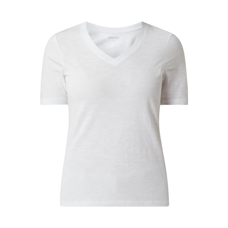 T-shirt damski MONTEGO, Czysta bawełna, Taliowany krój, Dżersej slub, Dekolt w serek, Długość tyłu w rozmiarze S: 57 cm