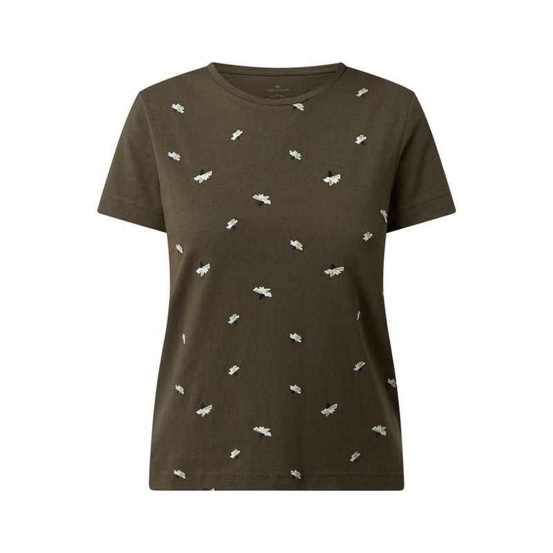 T-shirt damski TOM TAILOR, Czysta bawełna z dodatkiem materiału ekologicznego, Prosty krój , Okrągły dekolt , Hafty z przodu, Długość tyłu w rozmiarze S: 58 cm